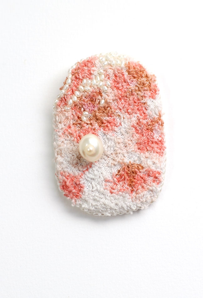Laurence Verdier, Broche / serviette éponge, perle de culture, perle baroque / 6 x 4,8cm
